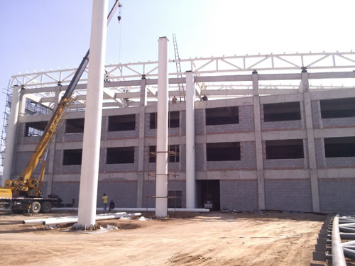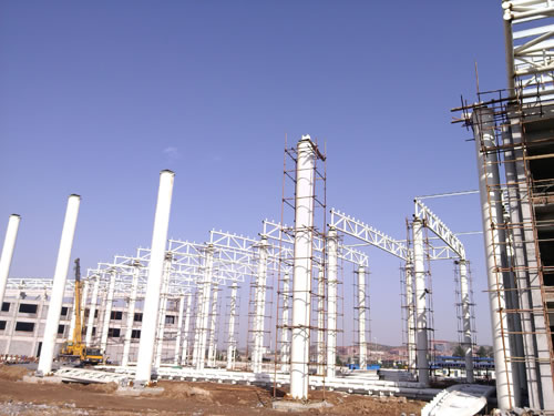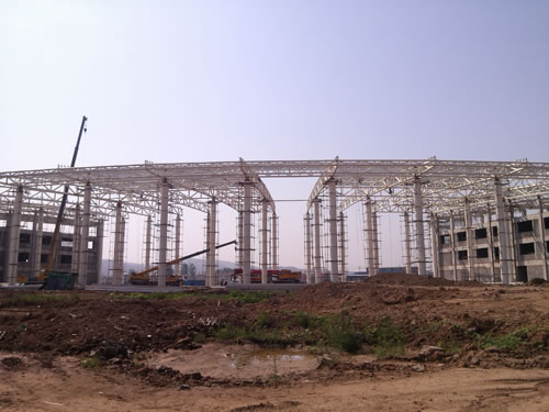 林州客運站廠房屬三層網架結構,三層網架是由上弦、中弦、下弦、上腹桿和下腹桿組成的空間結構。特點是增加網架高度,減小弦桿內力,減小網架尺寸和腹桿長度。當網架跨度較大時,三層網架用鋼量比普通網架用鋼量省,節點和桿件數量多,尤其是中層節點所連桿件較多,構造復雜。